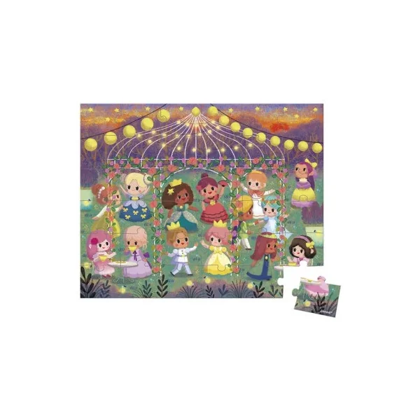 Découvrez le puzzle Princesses de Janod, un magnifique puzzle de 36 pièces en carton pour les enfants dès 4 ans. Un puzzle fabriqué en France avec une superbe illustration au coeur d’une réception où princes et princesses festoient.