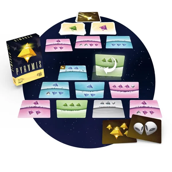 Inédit sur Terre ! Incarnez des aliens qui ont détruit leur belle planète. Sauvez votre peuple et constituez la Flotte avec le plus de Pyramides et d’Aliens possible. Entre jeu de placement, prise de risque et coups fourrés, saurez-vous mener votre Flotte vers la victoire ?