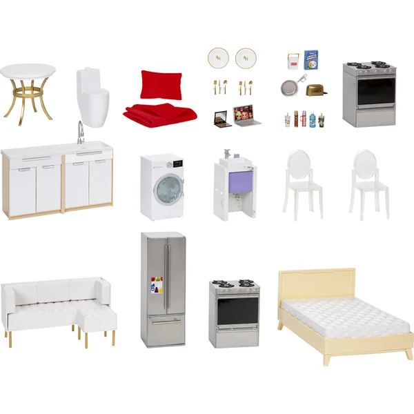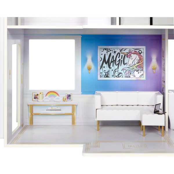 Concevez vous-même à quoi ressembleront les pièces spacieuses pour que votre Rainbow High vive confortablement et avec style. Utilisez les meubles et les éléments de design d’intérieur fournis. Soyez créatif et confiant – comme les filles RH !