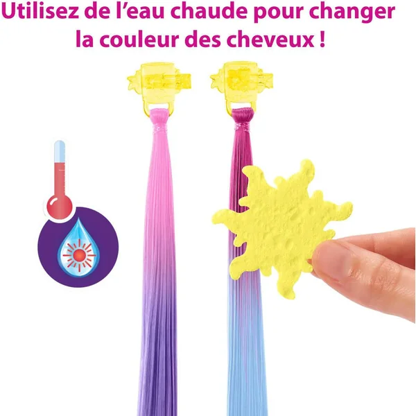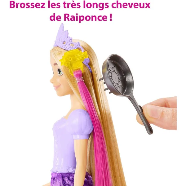 S’inspirant du personnage plein d’énergie et de créativité du film Disney. Le coffret contient deux extensions capillaires qui changent de couleur et de nombreux accessoires de coiffure pour tous les looks de conte de fées imaginables ! La poupée ne tient pas debout toute seule. Les couleurs et les décorations peuvent varier. Raiponce et ses cheveux longs qui descendent jusqu’à terre et pour créer des coiffures de princesse 19 accessoires sont associés à la poupée dont 2 mèches de couleur.