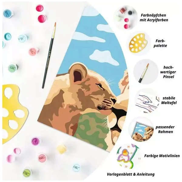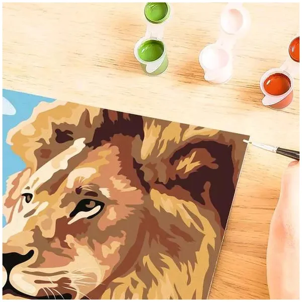The Ravensburger CreArt set features a charming lion and baby motif, enhanced by colored outline lines that make it easier for children to recognize the different sections and colors. This thoughtful design element not only simplifies the painting process but also boosts the overall enjoyment and satisfaction of completing the artwork. Each kit comes with 14 pre-mixed acrylic paints, ensuring that young artists have everything they need to create a stunning masterpiece without the hassle of mixing colors.
