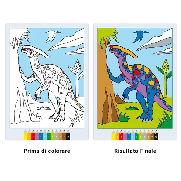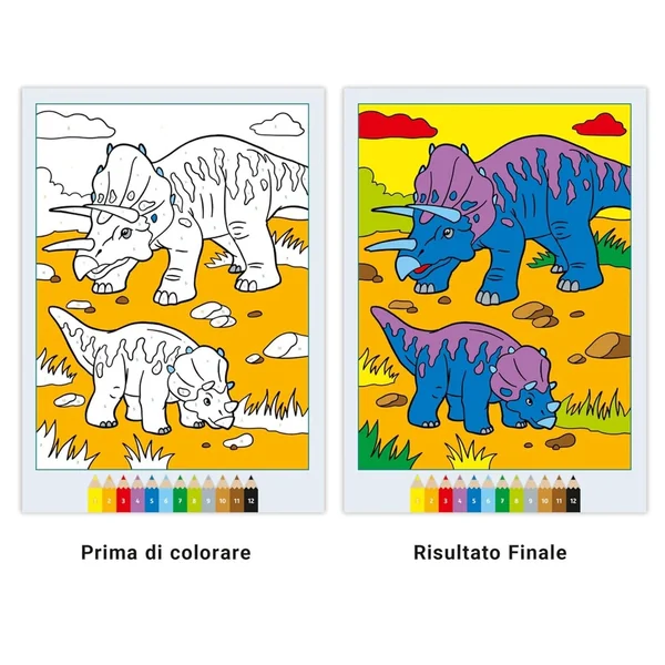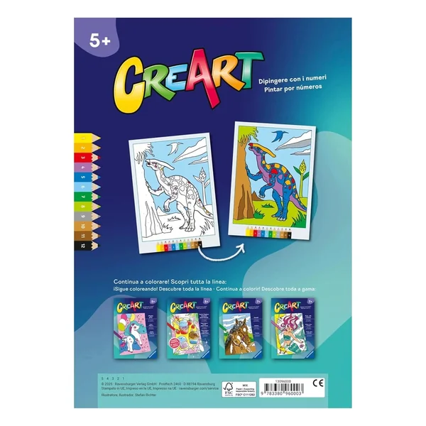 The CreArt series stands out with its innovative approach to colouring. Each page features simple yet engaging dinosaur illustrations, where every area to be coloured is marked with a number corresponding to a specific colour. This thoughtful design ensures that children can easily match the numbers to the colours, allowing them to create vibrant and detailed images without frustration. As they fill in the spaces, the numbers gently fade away, leaving behind a stunning masterpiece that they can proudly display.