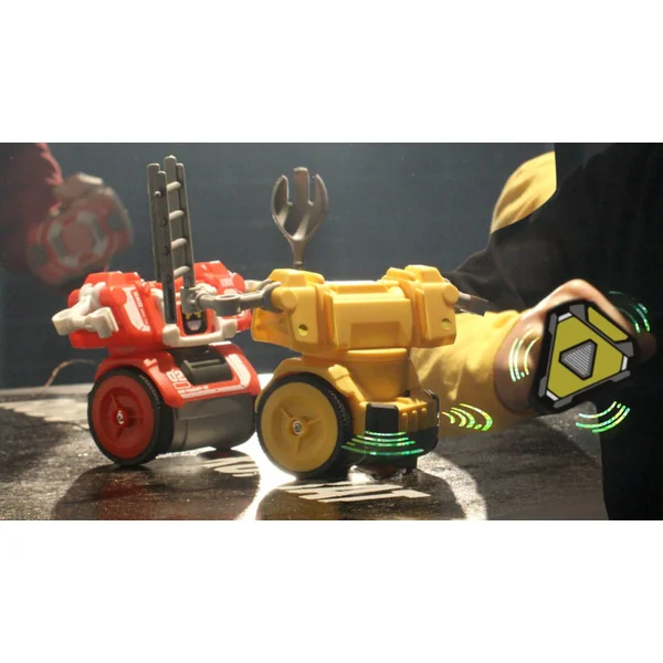 Mettez des bagues sur vos mains et utilisez-les pour contrôler votre robot ! Crochet gauche, crochet droit et celui qui reste debout gagne !