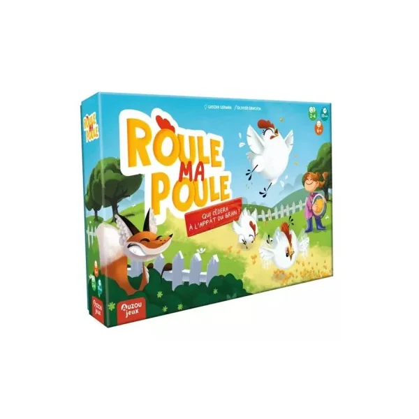 Découvrez le jeu Roule ma poule de Auzou, un jeu de stratégie pour jouer en famille dès 6 ans. Un jeu de société dans lequel vous devrez récolter le plus de maïs pour gagner la partie.