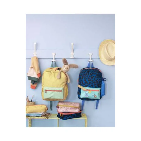 Le sac à dos idéal pour partir à l’école dès 3 ans. On peut y glisser un format A4 sans risque, des petits trésors dans la poche avant ou encore une gourde sur le côté.
