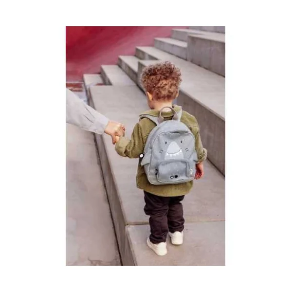 Découvrez le sac à dos Requin de Trixie, un sac à dos gris pouvant accueillir les affaires de votre enfant et qui l’accompagnera à la crèche ou à l’école maternelle. La frimousse de cet adorable requin, ainsi que sa nageoire et ses ailerons en volume séduiront votre enfant.