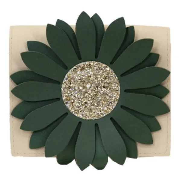 Voici un de nos best seller, Flora, la brillante marguerite ou pétales de roses foret viennent embrasser un cœur pailleté doré.