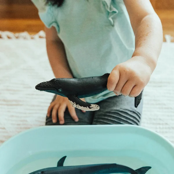 Caractéristiques : Cette figurine de baleine à bosse remarquablement réaliste adopte une posture qui met en valeur ses caractéristiques uniques, y compris sa grande queue, sa coloration tachetée et sa bosse prononcée sur le dos.