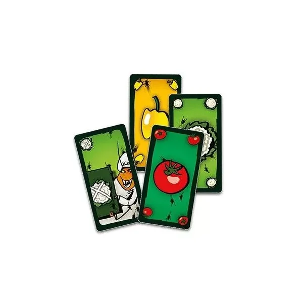 Le jeu contient 112 cartes Légumes, 16 cartes Légumes tabous (avec des cafards) et la règle du jeu.