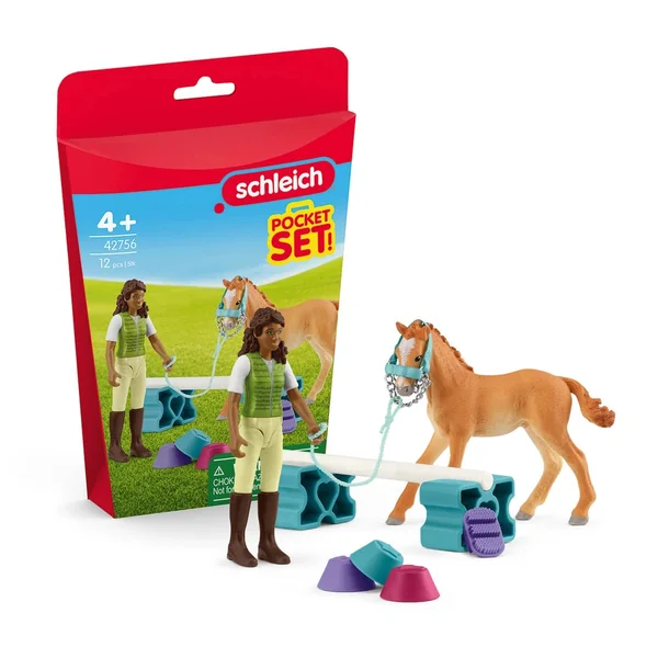 The Pocket Set features a beautifully crafted Tennessee Walker foal and a dedicated trainer named Sarah, who is ready to guide her young horse through various agility challenges. The set includes essential training equipment, such as a halter, adjustable obstacles, and markers for creating a dynamic training course. Children can lead the foal through slaloms, over bridges, and around cones, enhancing their understanding of horse handling and agility training.