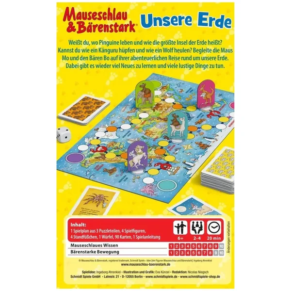 Introducing Schmidt Spiele’s « Our Earth » – an engaging children’s board game designed to spark curiosity and foster a love for learning about our planet. This delightful game invites young players to embark on an exciting journey alongside Mo the Mouse and Bo the Bear, exploring diverse habitats and discovering fascinating facts about animals and geography. With its vibrant illustrations and interactive gameplay, « Our Earth » transforms education into an adventure, making it an ideal choice for families seeking to combine fun and learning.