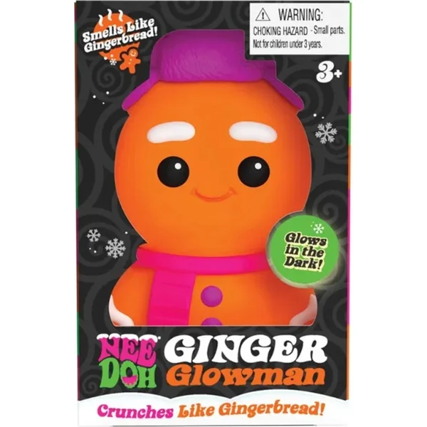 Ce compagnon de Noël a un design festif qui brille dans l’obscurité, et un rembourrage croustillant unique qui rappelle un bonhomme en pain d’épices fraîchement cuit.