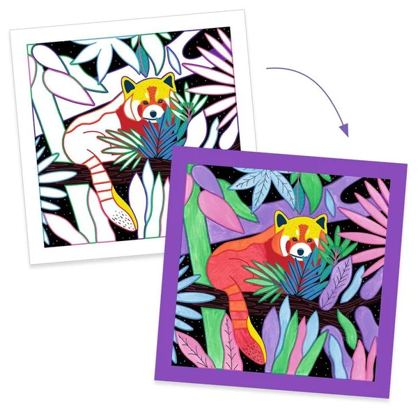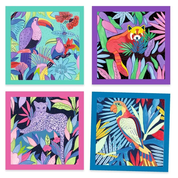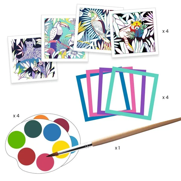Une pochette idéale pour s’initier à la peinture : 4 cartes aux zones clairement délimitées, chacune accompagnée de sa palette de couleurs correspondante. Avec très peu d’eau, l’enfant peint facilement de larges surfaces comme de petits détails, puis associe sa réalisation à l’un des 4 cadres fournis pour la finaliser et l’exposer. Une activité simple à mettre en place pour commeer à peindre en toute autonomie.