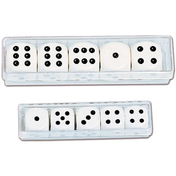 5 dés de 16 mm dans leur boite cristal.