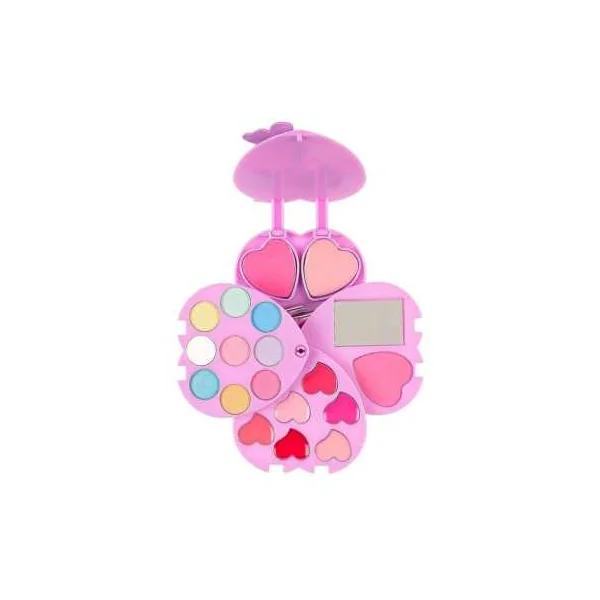 Ce kit de maquillage contient différentes couleurs de fard à paupières, de brillant à lèvres et de blush dans un coffret coeur à quatre compartiments de maquillage. Un format pratique à emporter partout.