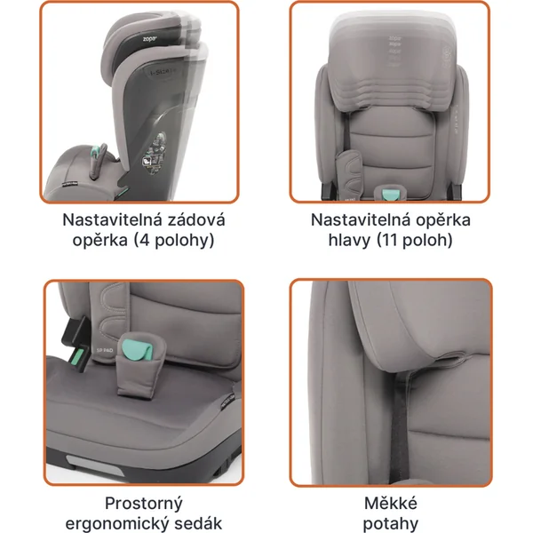 Un siège auto spacieux avec des housses douces et la possibilité de s’incliner en 4 positions ergonomiques garantit un voyage confortable même lors de longs trajets et pendant le sommeil. Le réglage de la position peut être facilement ajusté à l’aide d’un verrou à l’avant du siège auto. L’appuie-tête offre jusqu’à 10 positions de réglage, ce qui permet au siège auto de grandir avec l’enfant.