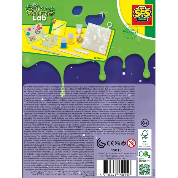 L’heure du slime ! Tu n’as pas peur de te salir les mains et tu aimes faire des expériences ? Tu peux fabriquer ton propre slime avec ce kit de slime ! Décore ton slime avec des paillettes et des étoiles qui brillent dans le noir et mélange les couleurs. Tu peux élaborer tes propres recettes et les tester ! Ce mélange contient de la poudre de slime, un sac refermable, de la teinture et différents éléments à ajouter au slime.