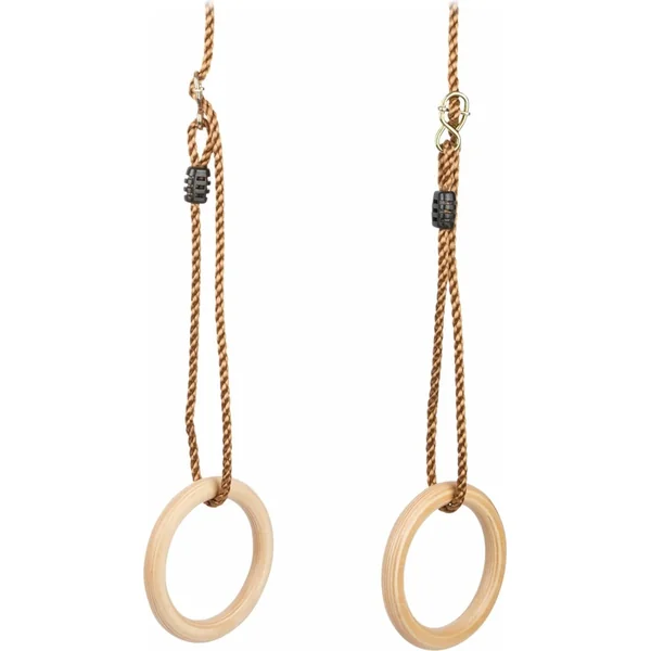 Même les routines les plus exigeantes peuvent être pratiquées à la maison dans le jardin. Les cerceaux sont adaptés en taille même pour les plus jeunes enfants. Les cordes sont facilement réglables en hauteur et dotées d’anneaux en métal aux extrémités pour la suspension.