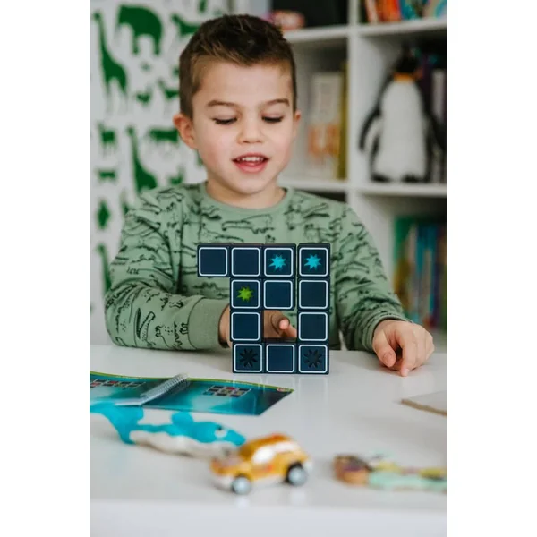 Découvrez le jeu Constellation de Smartgames, un jeu de logique où vous devrez réaliser 80 défis évolutifs. Constellation est un jeu dans lequel vous devrez retrouver la position de cinq étoiles dans le ciel tel qu’indiqué dans le défi choisi. La magie de ce jeu est représentée par un ingénieux système d’occultation des étoiles lorsque vous manipulez les blocs toutes les couleurs changent. Choisissez un défi. Pour résoudre le défi, vous devrez superposer les pièces les unes sur les autres afin de construire un ensemble identique à celui du défi. La position et la couleur des étoiles des pièces utilisées doivent être identiques à ce que le défi demande de réaliser. Il n’y a qu’une solution par défi que vous trouverez à la fin du livret de défis. Le jeu contient quatre pièces de jeu réversibles présentant des étoiles de couleur, un livret de 80 défis avec les solutions.