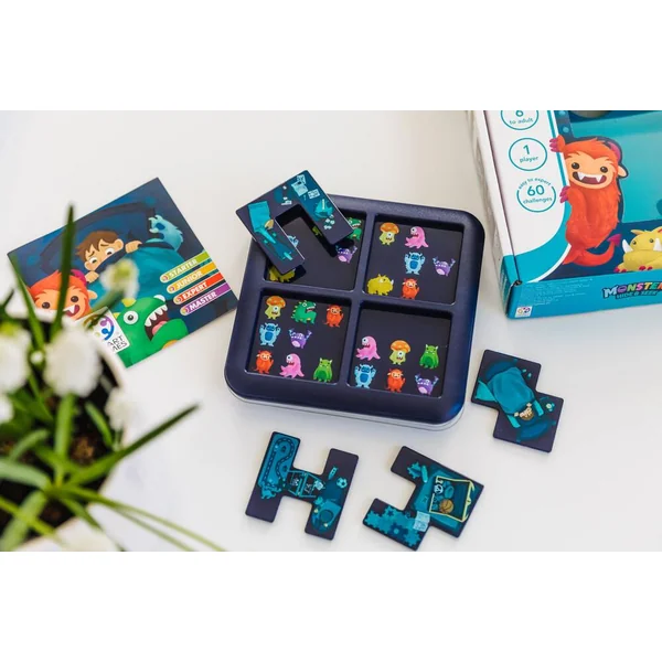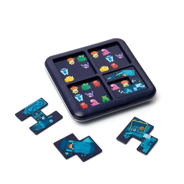 Découvrez le jeu Monstres sous le lit de Smartgames, un jeu de logique et de réflexion dans lequel les enfants devront placer correctement les tuiles sur le plateau de jeu, dans le but de résoudre les 60 défis proposés. Un jeu offrant de nombreux défis, du plus simple au plus difficile, et présenté dans un format compact idéal pour les voyages. Le jeu contient un plateau de jeu et son couvercle, 4 tuiles et un livret de 60 défis et leurs solutions. Nombre de joueur 1 –