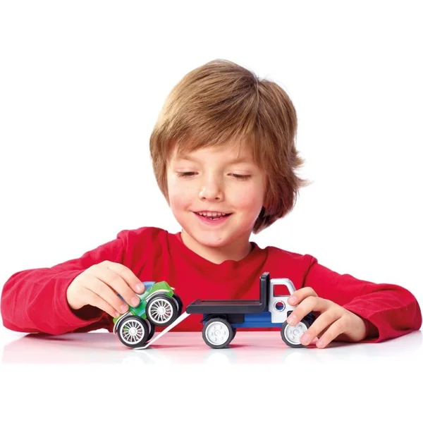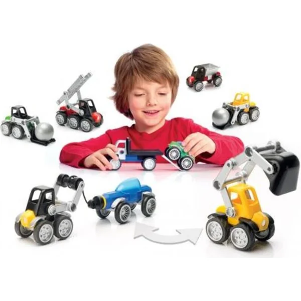 • Avec cet ensemble, les enfants peuvent assembler différents véhicules tels qu’un camion de pompiers, un bulldozer, un chariot élévateur, un camion de remorquage ou un pick-up.