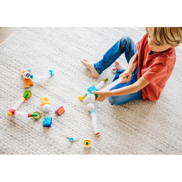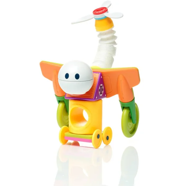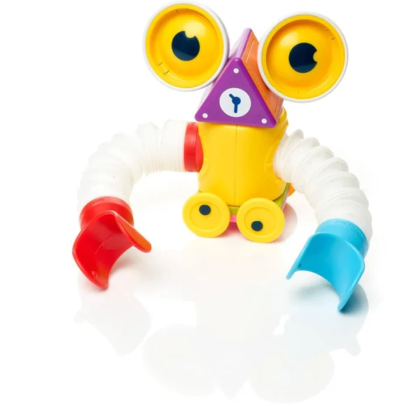 Découvrez Roboflex Plus de Smartmax, un coffret de jeu de construction magnétique permettant aux enfants de construire des robots rigolos et originaux. L’enfant plie, allonge et assemble les 20 pièces de constructions, afin de créer des robots colorés et déjantés. Il pourra reproduire les robots illustrés sur le poster ou laisser libre en court à son imagination en créant ses propres créatures, qu’il pourra ensuite faire marcher, sauter, voler… Qui a dit que les robots n’étaient pas flexibles ?