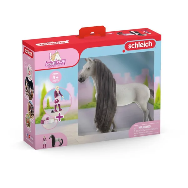 Sofia et sa jument Trakehner Dusty sont de véritables amies pour la vie. Depuis que Dusty a affectueusement chahuté Sofia alors qu’elle visitait le centre équestre, elles sont pour ainsi dire inséparables. Elles adorent créer de nouvelles coiffures pour la crinière et la queue de Dusty. Tu vois ces perles et ces pinces colorées ? Sofia aime les roses, tandis que Dusty préfère les violets. Elles n’arrivent pas à dire lesquelles sont les plus belles ! Et toi, lesquelles préfères-tu ? Peux-tu aider Sofia et Dusty à se refaire une beauté avant leur prochaine sortie ?