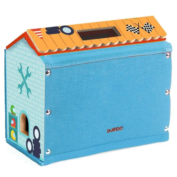 Un premier garage et circuit nomade en feutrine épaisse et bois, adapté aux enfants dès 18 mois. L’enfant ouvre le garage pour découvrir un grand circuit avec 3 voitures et 3 box. Chaque box est fermé par des bandes de feutrine : la voiture peut passer, mais elle reste cachée, ajoutant du suspense au jeu. Les enfants inventent librement des histoires de course et de stationnement. Une fois que le jeu est terminé, ils rangent facilement les voitures dans le garage et le transportent grâce à la poignée pratique. La feutrine épaisse assure une structure rigide mais légère.