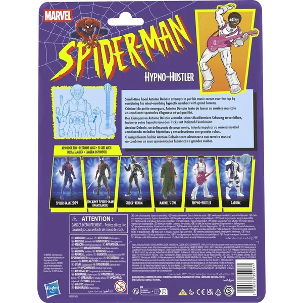 Cette figurine Hasbro Marvel Legends Hypno-Hustler est parfaite pour agrandir une collection de figurines de l’univers Marvel ! Cette figurine de collection Marvel de 15 cm est inspirée de l’apparence du personnage dans la bande dessinée Marvel Spider-Man. Cette figurine Hypno-Hustler a un design premium et une tête, des bras et des jambes entièrement articulés. Cette figurine Marvel est vendue avec 8 accessoires dont 2 mains alternatives, une guitare hypnotique avec sangle, un microphone et 4 effets de pouvoir. Les figurines Hasbro Marvel à l’échelle 15 cm ont fière allure, parfaites pour être exposées dans les collections des fans. On peut recréer des scènes inspirées des bandes dessinées sur son étagère avec les figurines articulées Marvel Legends et les pièces de collection Marvel. Copyright 2025 MARVEL. Hasbro et tous les termes associés sont des marques de commerce de Hasbro.
