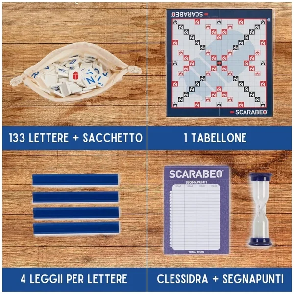The Scarabeo game set comes complete with everything you need for an exciting game experience. Inside the box, you will find a game board, four player stands, 133 letter tiles, a drawstring bag, a timer, a scorekeeping notebook, and a comprehensive instruction manual. This all-inclusive package makes it easy to set up and start playing right away, ensuring that you can dive into the fun without any hassle.
