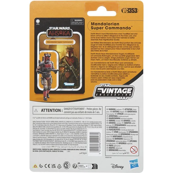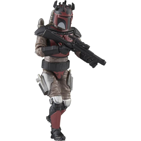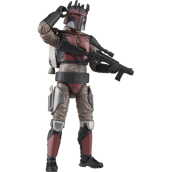 Les Mandaloriens fidèles à Dark Maul portent des armures rouges et noires modifiées pour refléter leur allégeance au Seigneur des Ténèbres, et certains arborent même des cornes sur leurs casques. Figuirne de 10 cm avec multiples points d’articulation.