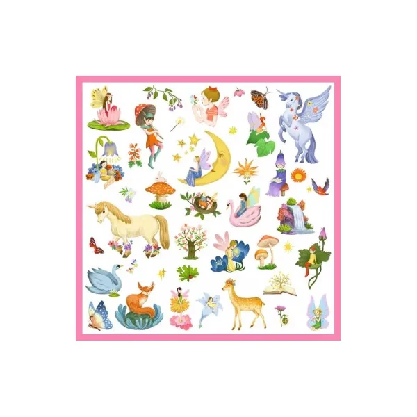 Lutins, fées, licorne et esprits de la forêt… Bienvenue dans un univers fantastique! Votre enfant s’amusera à coller ces superbes stickers partout pour créer de jolies scènes. Vous en retrouverez sur ses cahiers, ses dessins… Des zones métallisées donnent aux stickers de jolis reflets… votre enfant va adorer!
