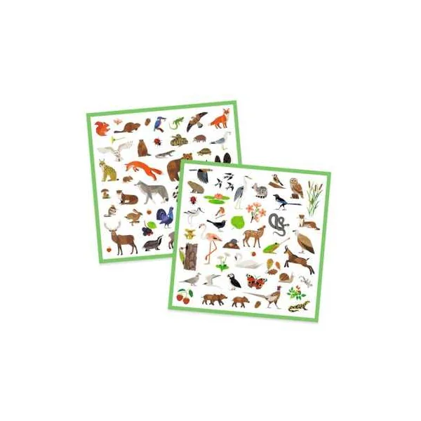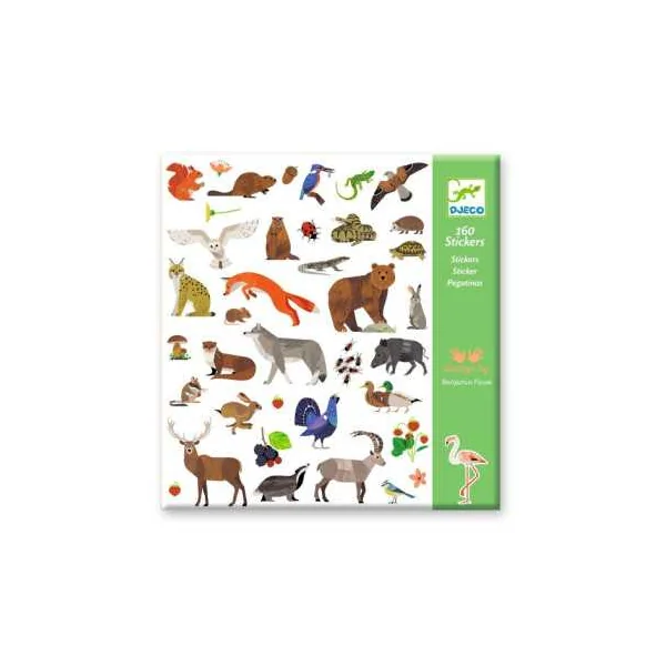 Découvrez les stickers Faune de Djeco, une pochette comprenant 4 planches avec 160 stickers sur le thème des animaux d’Europe pour les enfants de 4 à 7 ans.