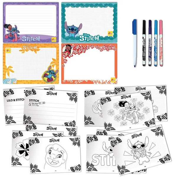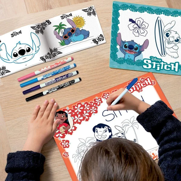 ECOLE DE DESSINS + FEUTRES PARFUMES STITCH, Dessinez et colorez vos personnages préférés avec ce fantastique kit créatif ! Avec l’école de dessin de Stitch, il sera très facile de dessiner grâce au guide pratique qui contient de nombreux dessins organisés selon une difficulté progressive, des exercices de pré-écriture aux images plus complexes, que vous pourrez colorier avec les feutres parfumés inclus dans le kit. De plus, grâce aux 4 ardoises effaçables, vous pouvez effacer et recommencer à chaque fois que vous le souhaitez !