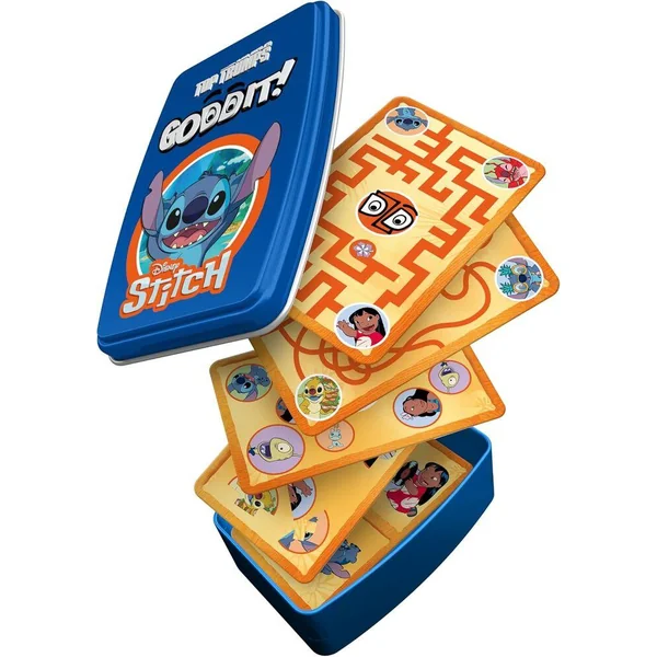 Grâce aux illustrations issues du célèbre dessin animé Lilo et Stitch et à sa boîte métallique pratique et portable, GODDIT ! est le jeu idéal pour s’amuser en famille et entre amis.