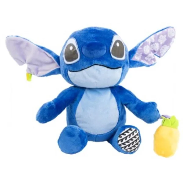 Une douce peluche Stitch à câliner, avec des fonctions électroniques : en appuyant sur le bouton, Bébé pourra écouter des musiques, des berceuses et des effets sonores.
