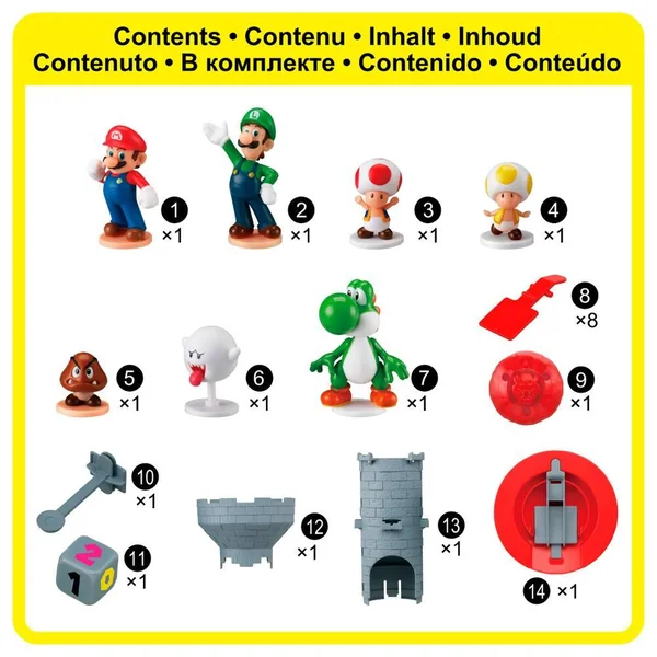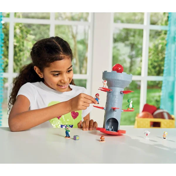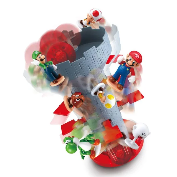 Ne fais pas tomber les personnages de l’univers Super Mario de la tour ! Lance le dé et place les figurines sur la tour ! Fais attention, si la tour tremble, la boule va tomber et tes personnages chuter ! Avec 7 figurines. A partir de 2 joueurs.