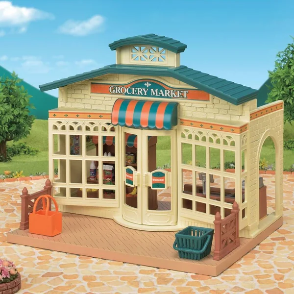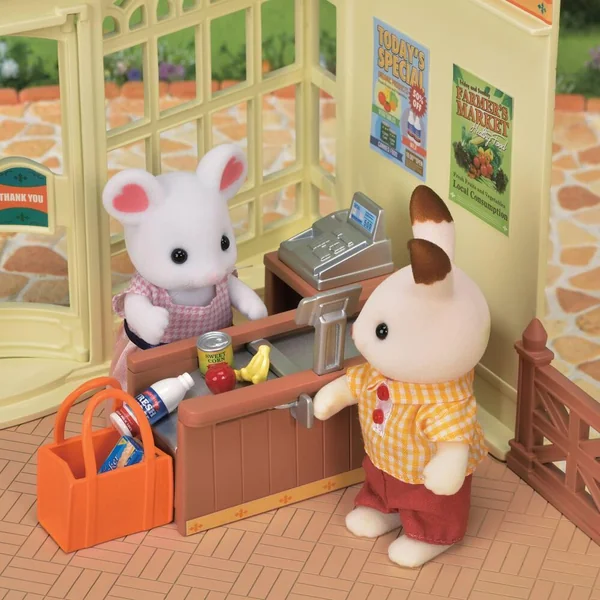 Le supermarché peut être agencé comme bon vous semble. Il contient une caisse, un étal pour exposer les produits, des paniers, des fruits, des légumes et des produits manufacturés. Ce supermarché est composé de plus de 35 pièces pour imaginer de nombreuses histoires. Inclus: 1 supermarché, 1 étal, 1 comptoir-caisse, 1 panier, 1 sac de shopping, 2 barrières, de nombreux accessoires.