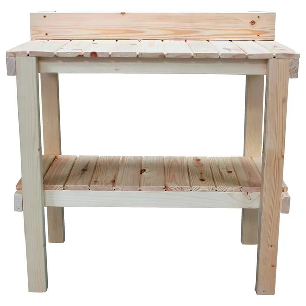 Structure en bois brut avec 2 étagères. Accessoires non inclus. Dim : L 65 X l. 35 X H. 65 cm.