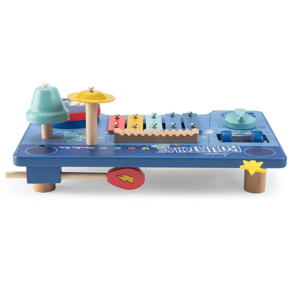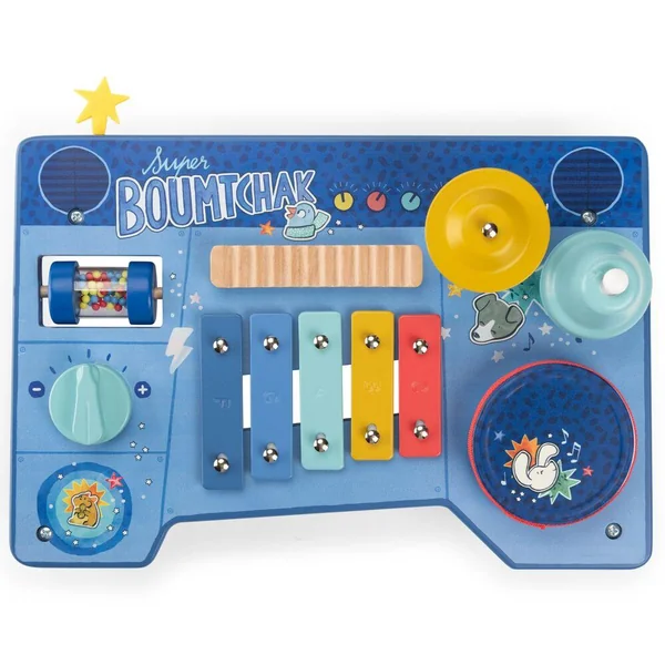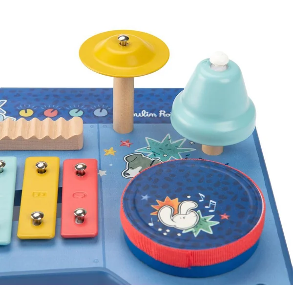 Cette table multi-activités musicales Puce et pilou de Moulin Roty est réalisé en bois joyeusement coloré. Il réunit un tambour, un métallophone, une clochette, une maraca et un grattoir, dont votre bout de chou pourra faire entendre les jolies notes à l’aide de la baguette. Que le spectacle commence !