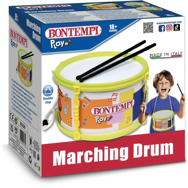 Tambour avec bandoulière et baguettes mm • Son réel • Dim: 210x210x115 mm-