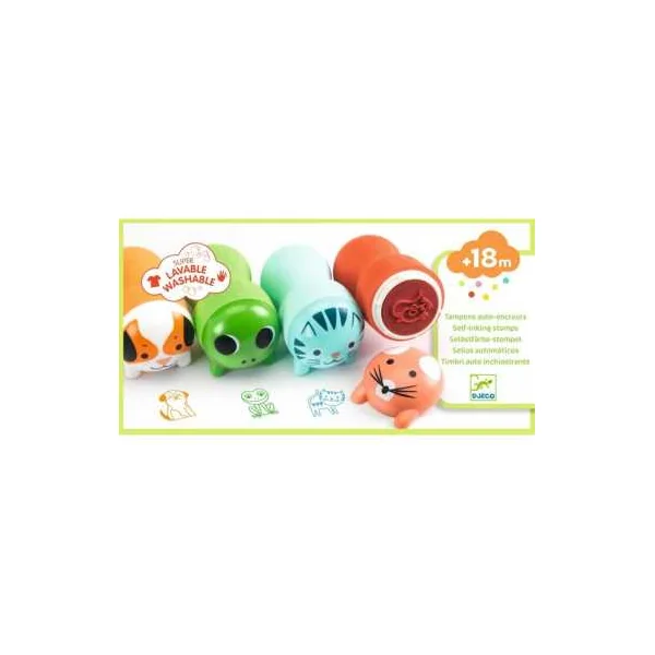 Découvrez les tampons animaux du jardin de Djeco, 4 tampons pour les enfants à partir de 18 mois. Des tampons ergonomiques et auto-encreurs avec une poignée en mousse spécialement adaptés pour les petites mains. Votre enfant va pouvoir tamponner des chats, des chiens, des souris et des grenouilles sur ses cahiers ou ses feuilles de dessin.