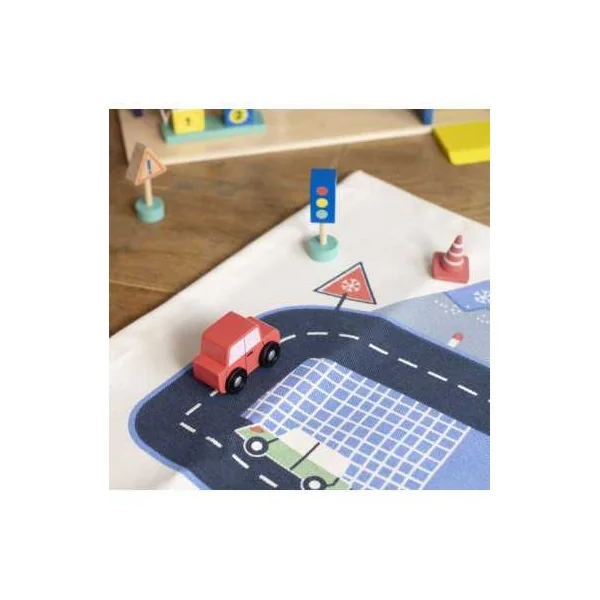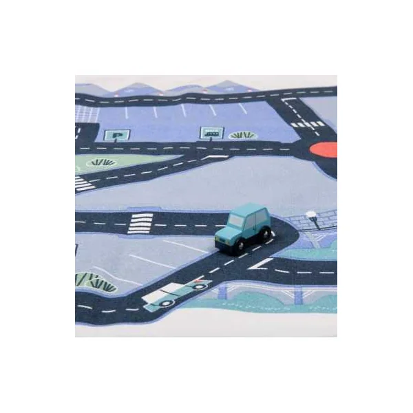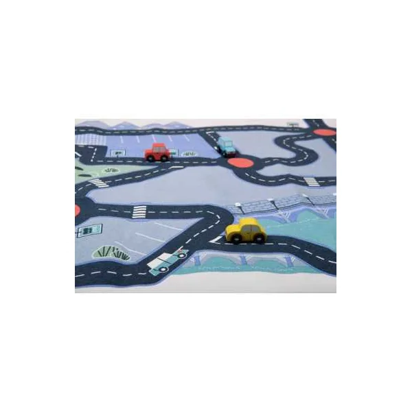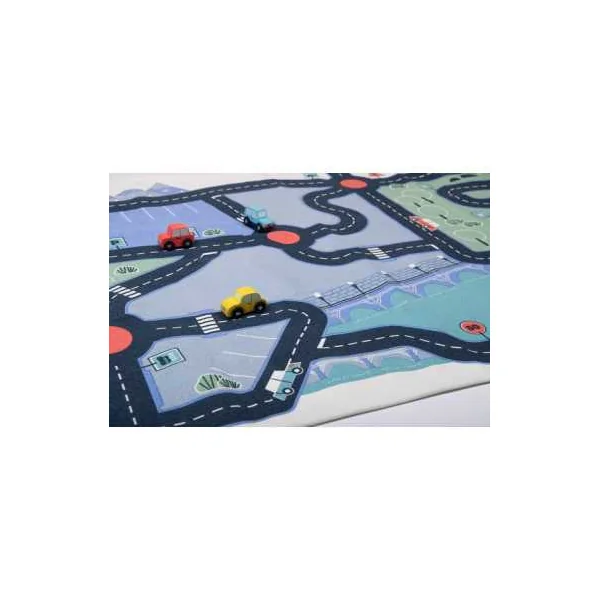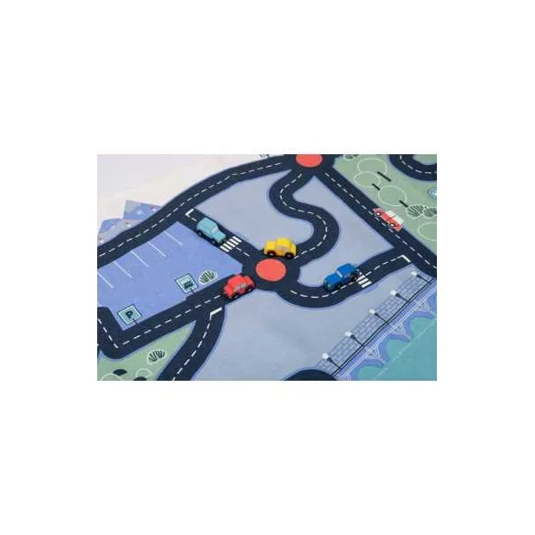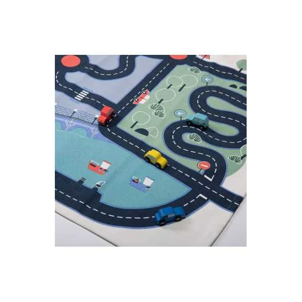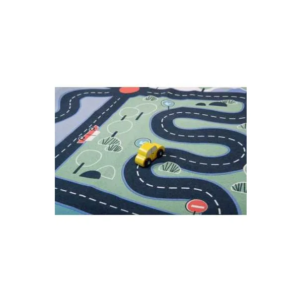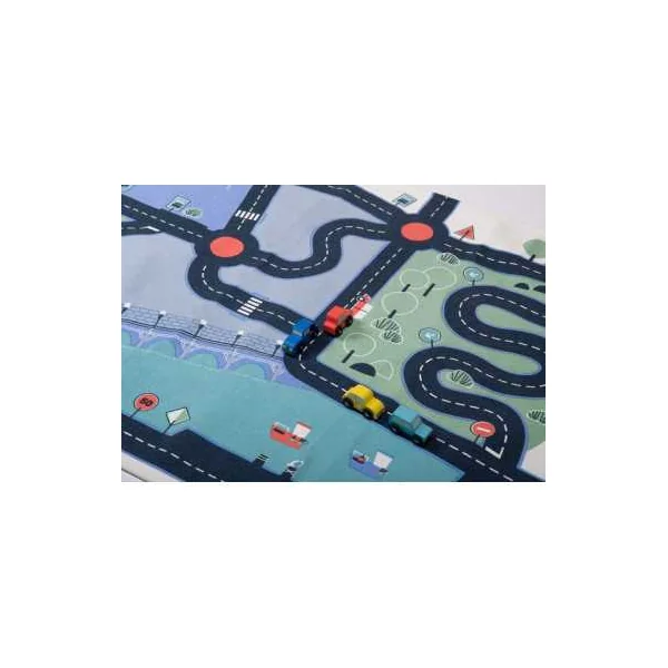 Parfait pour les passionnés de petites voitures et de courses endiablées, ce tapis offre un terrain de jeu dynamique avec ses routes sinueuses et ses paysages variés. Préparez-vous à des courses survoltées alors que vos petits pilotes font rugir leurs bolides sur ce tapis 100% coton résistant et antidérapant.
