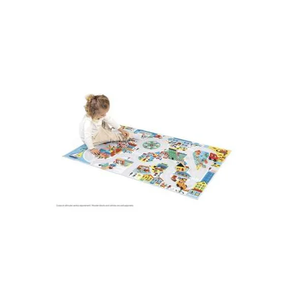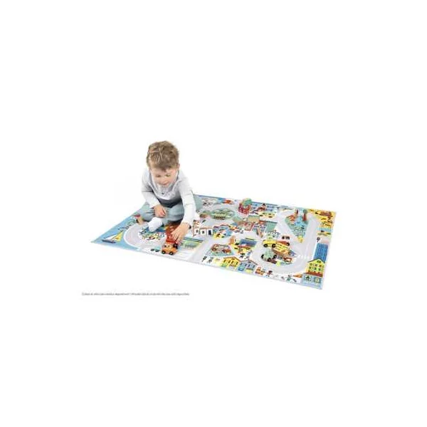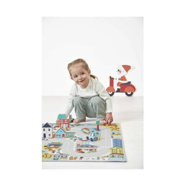 Avec sa longue route sinueuse traversant différents paysages, ce tapis de voiture invite les enfants à imaginer de belles histoires. Le tapis propose également une activité de « Cherche et trouve », idéale pour stimuler la concentration et l’interaction. Votre enfant s’amusera à découvrir les métiers, à reconnaitre les couleurs, les émotions… Autant de saynètes qui développent son vocabulaire.