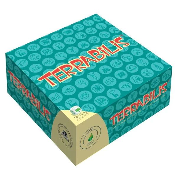 Terrabilis est un jeu de société familial semi-coopératif qui permet de passer un bon moment en rassemblant plusieurs générations autour d’un plateau et du sujet de société le plus actuel : l’avenir de notre planète. À partir de 10 ans. Durée d’une partie: environ 45 à 60 minutes. Nombre de joueurs : 2 à 4 (jusqu’à 8 joueurs en équipe de 2). Contenu : 1 règle du jeu, 1 plateau, 4 cartes mémo, 4 cartes alliance, 81 cartes infrastructures, 110 cartes quiz (soit 220 questions commentées), 21 cartes aléas, 3×100 pastilles ressources, 80 billets de banque factices, 4 pions, 2 dés et 3 jetons climat. Fabriqué en Europe. Dimensions : du plateau de jeu déplié : 36.7 x 36.7 x 0.4 cm. Terrabilis est un jeu éco-conçu (encres végétales, vernis base eau, papiers, cartons et bois issus de filières durables FSC & PEFC ). Terrabilis a été labellisé par l’UNESCO et récompensé du label COP21 par le ministère du développement durable.