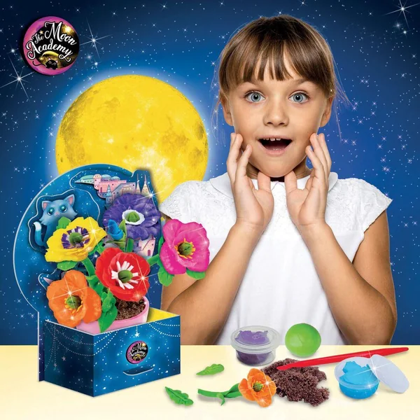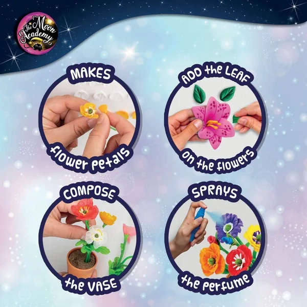 THE MOON ACADEMY BOUQUET DE FLEURS, Un kit créatif avec le composé innovant pour faire des fleurs de lune. Vous trouverez à l’intérieur tout ce dont vous avez besoin pour démontrer votre dextérité à créer de belles fleurs parfumées et libérer votre créativité..