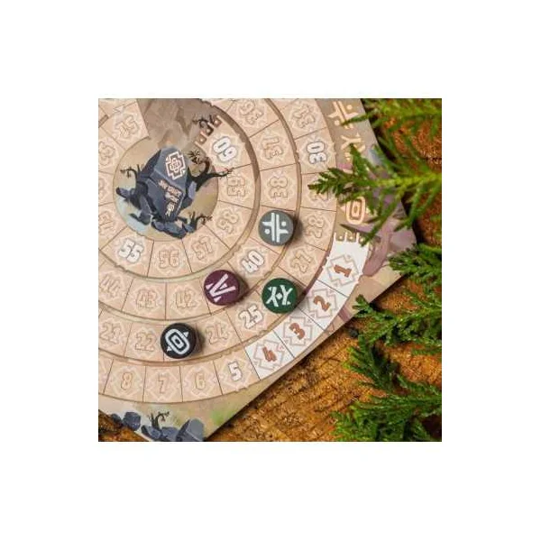 La boite de jeu contient 1 plateau & figurine cartonnée, 1 piste de score, 42 pierres magiques, 1 tuile d’initiative, 1 compteur de manches, 8 pions capture, 4 tuiles individuelles, 4 pions score et 1 livret de règles.