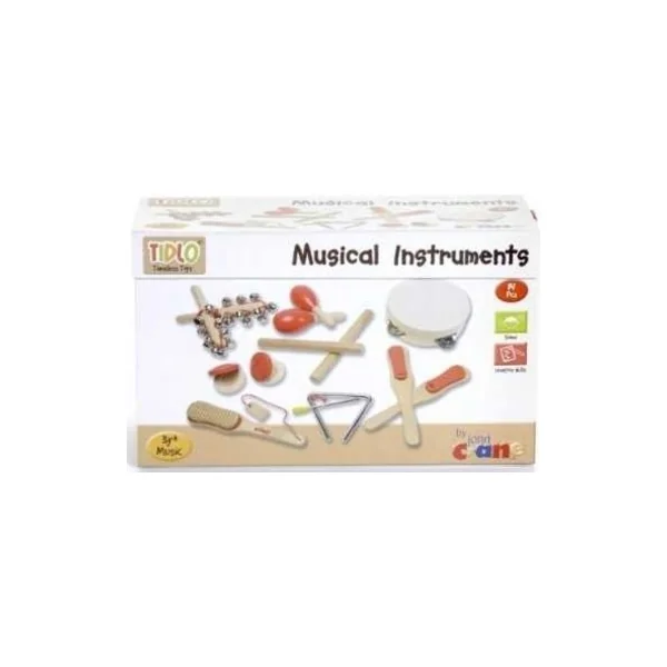 Tambourin, castagnettes, boules de rumba, grelots, baguettes, guiro et triangle, tout cela suffit à former un groupe ! Parfait pour un jeu créatif en groupe et une première introduction aux percussions. Les instruments sont fabriqués en bois, avec des détails rouges et sont de taille idéale pour les petites mains. Cela développe le sens du rythme et du timing.