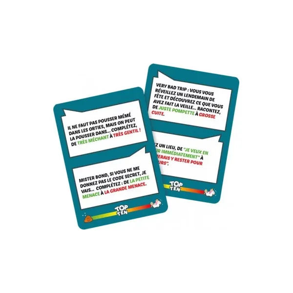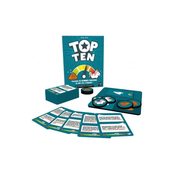 Découvrez le jeu Top ten de Cocktail games, un jeu d’ambiance coopératif pour jouer à partir de 4 joueurs dès 14 ans. Un jeu coopératif innovant et drôle avec toujours 10 bonnes raisons de dire des conneries où tous les joueurs sont dans la même équipe.