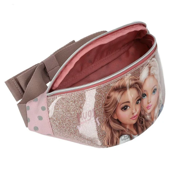 TOPModel Banane DOTSPetit sac tendance : ce crossbag rose à pois stylés peut être porté en bandoulière ou comme sac banane. Avec un grand motif deux mannequins sur fond pailleté voyant.